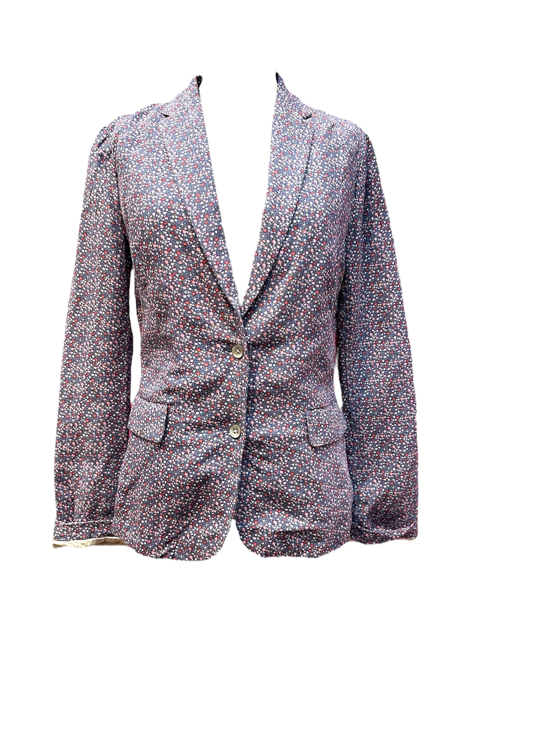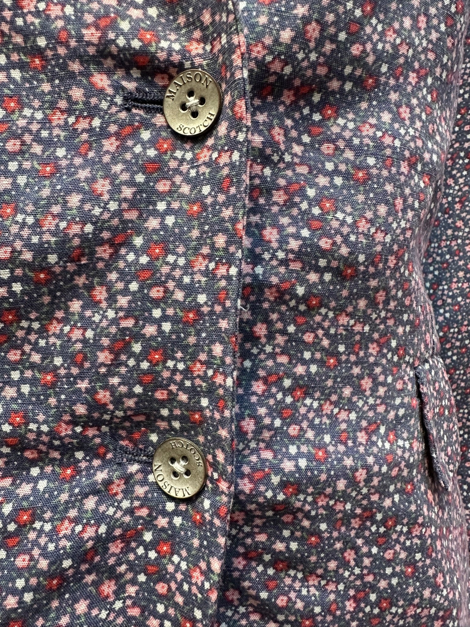 Veste chemise Maison Scotch, été, bouton argenté, 62 % lin 38 % lyocell, imprimé petite étoile colorée.